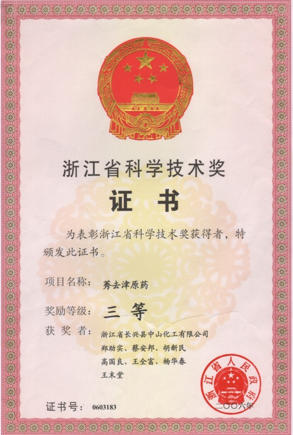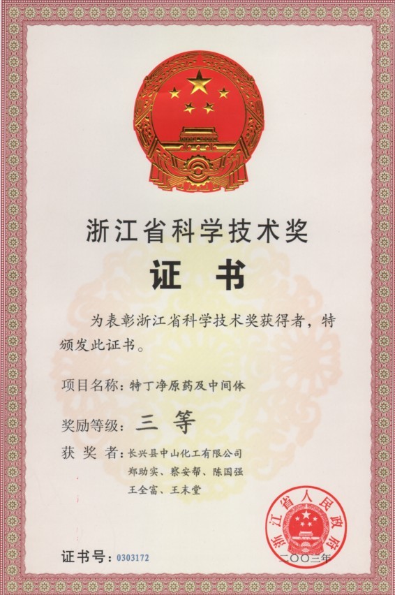 浙江省科學(xué)技術(shù)獎(jiǎng)--特丁津