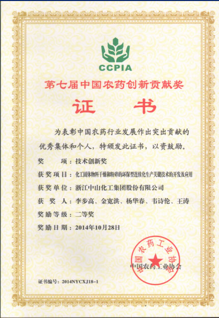 中國(guó)農(nóng)藥創(chuàng)新貢獻(xiàn)獎(jiǎng)-公司