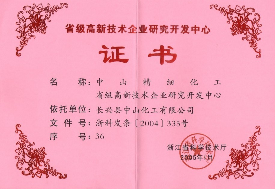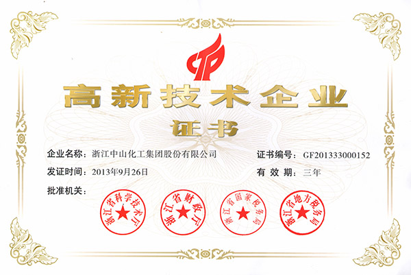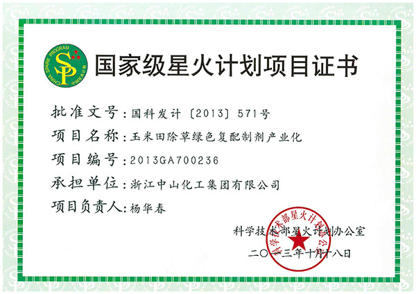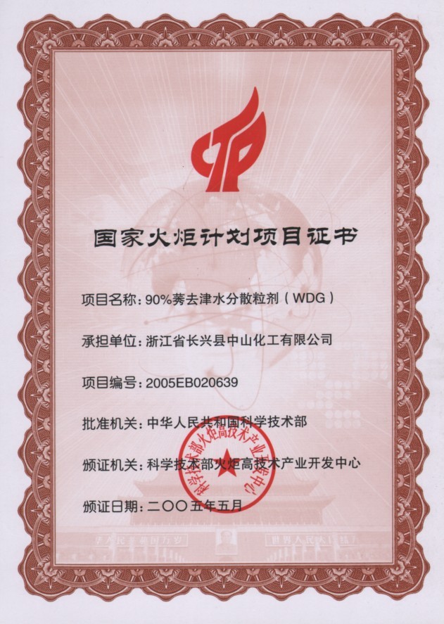 火炬計(jì)劃項(xiàng)目證書(shū)