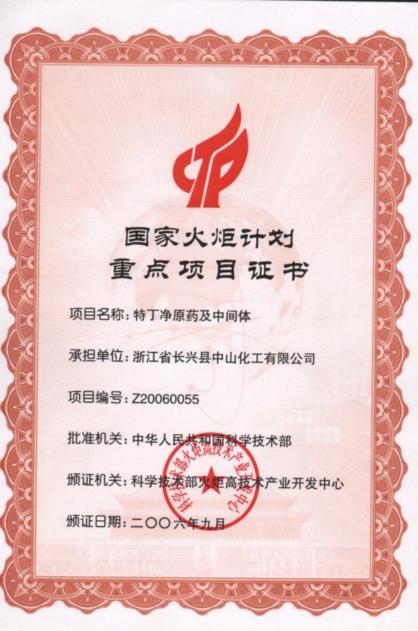 火炬計(jì)劃重點(diǎn)項(xiàng)目證書(shū)